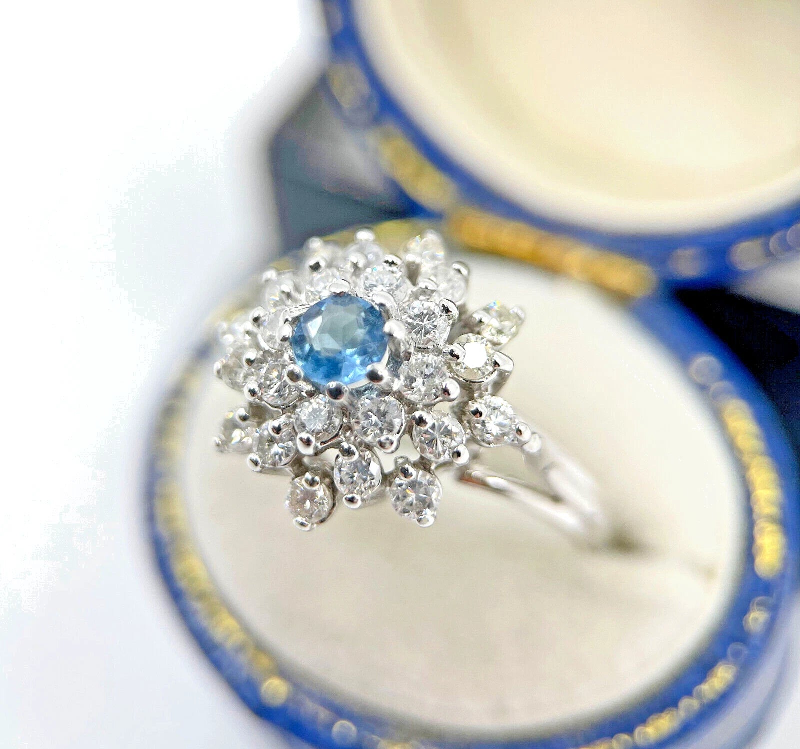 - Beautiful Aquamarine And Diamond Cluster Ring