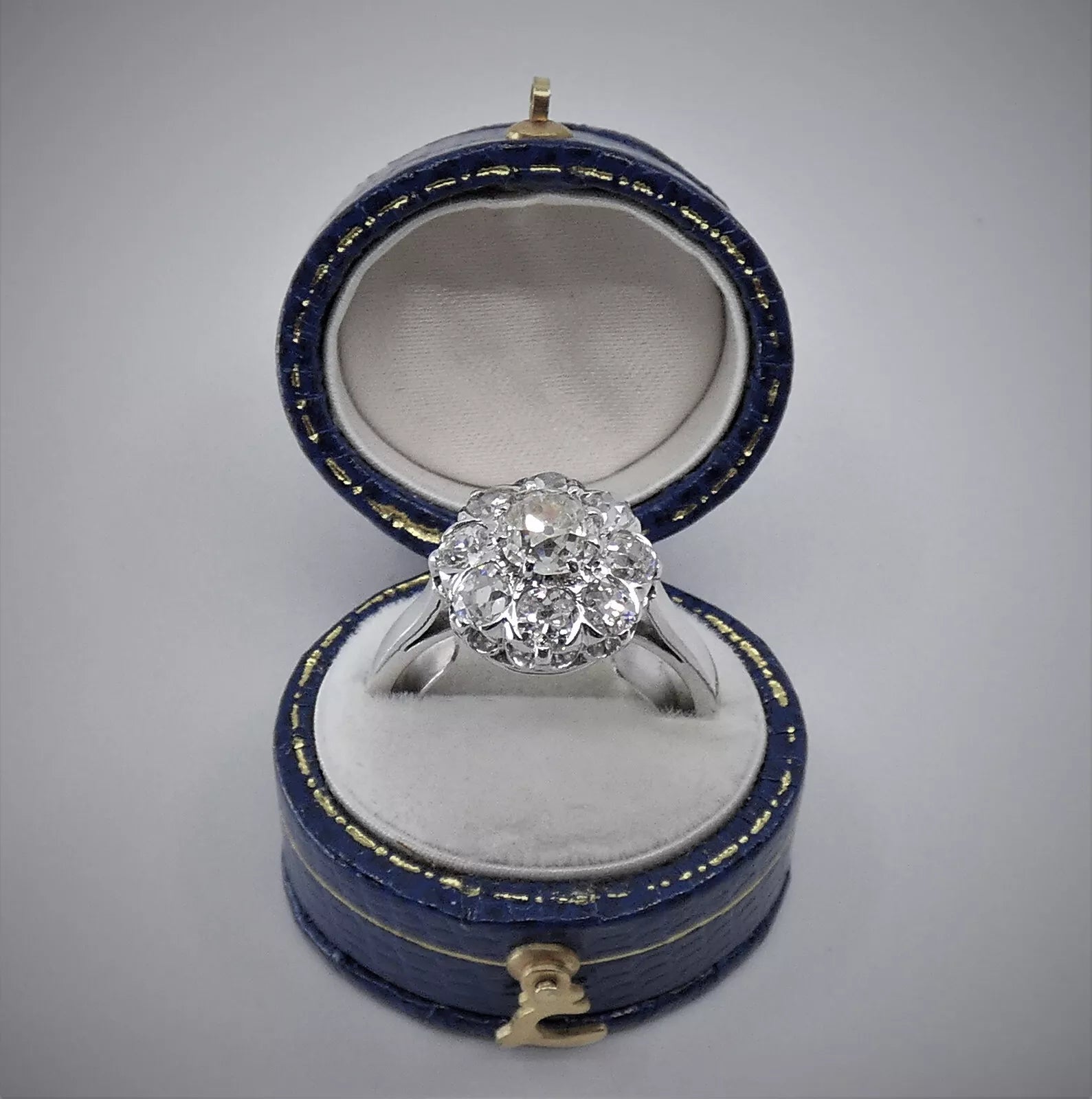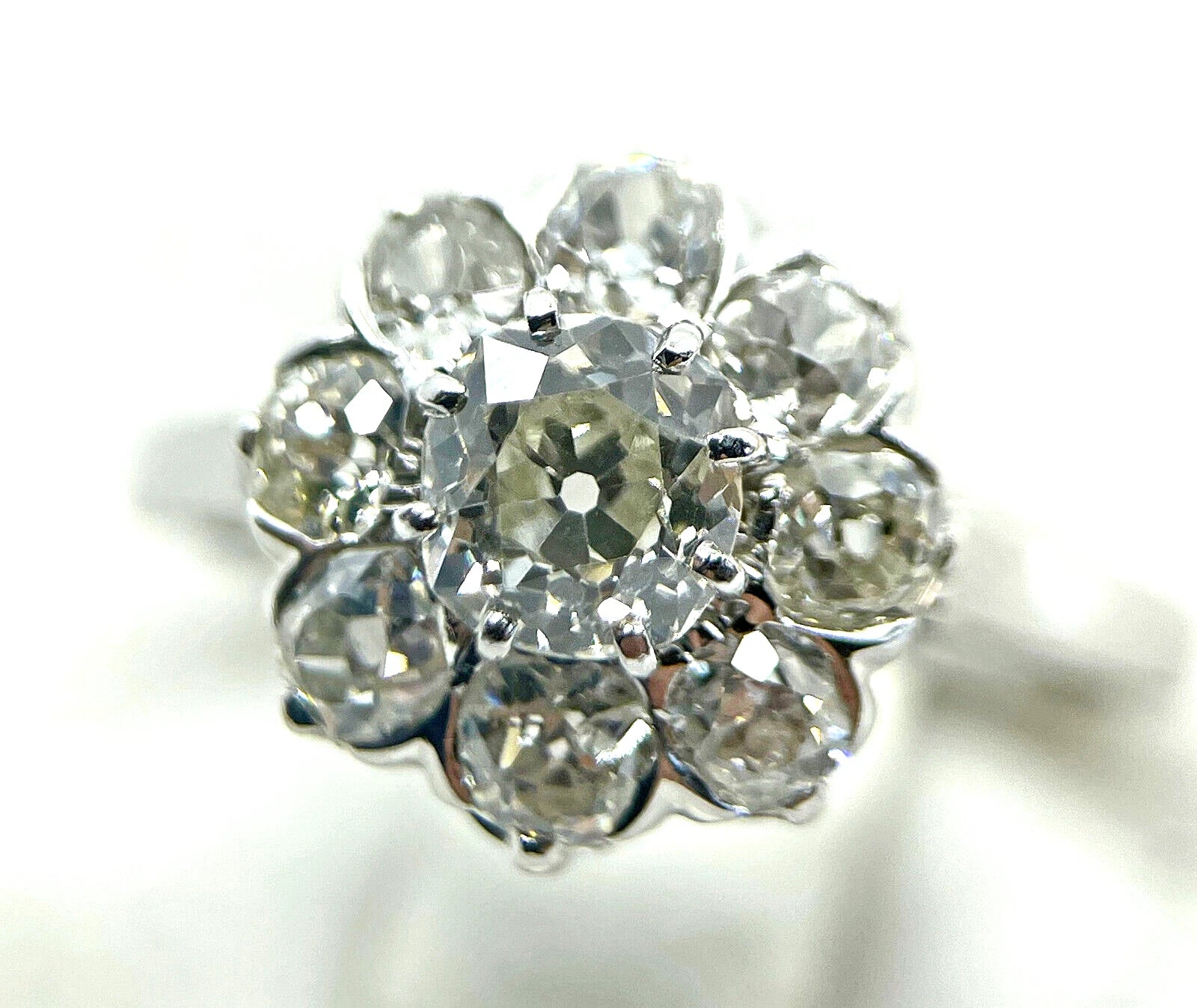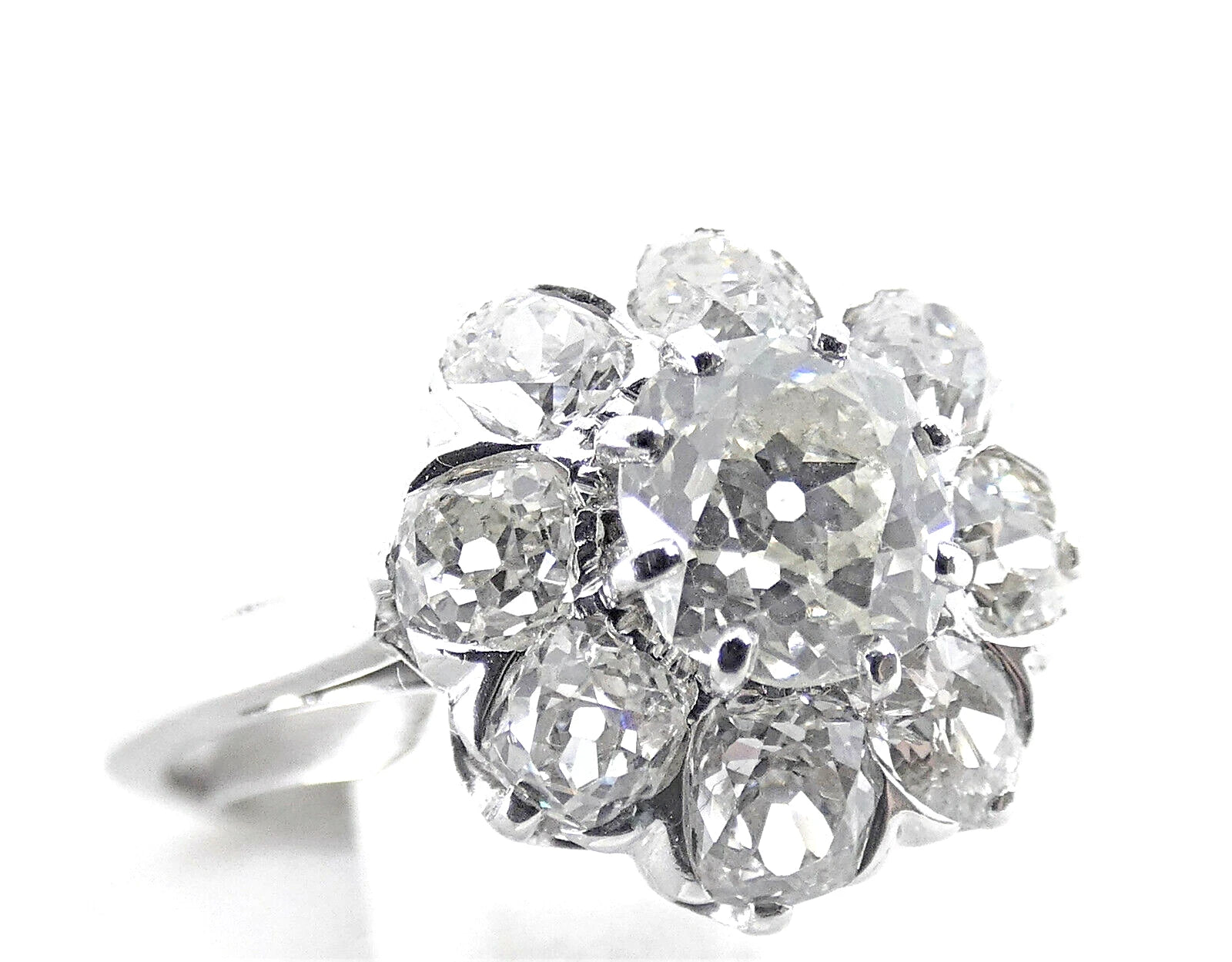 Diamond Ring Old Mine Cut Antique Vintage Cluster 2.80 Carats White Gold BA161