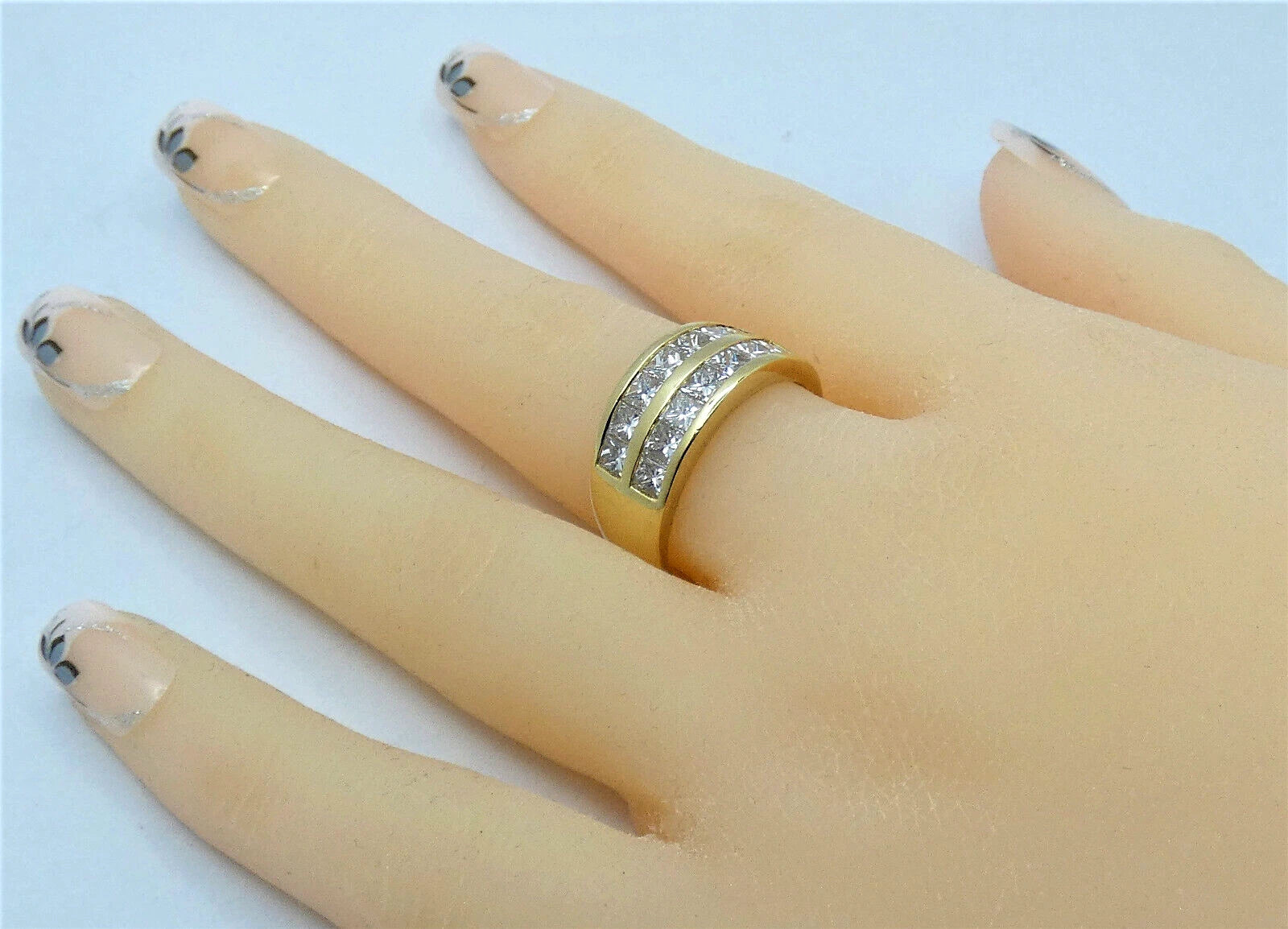 Diamond Ring Princess Band 2.25 Carats 18ct Gold HIGH QUALITY Size P1/2 BA153