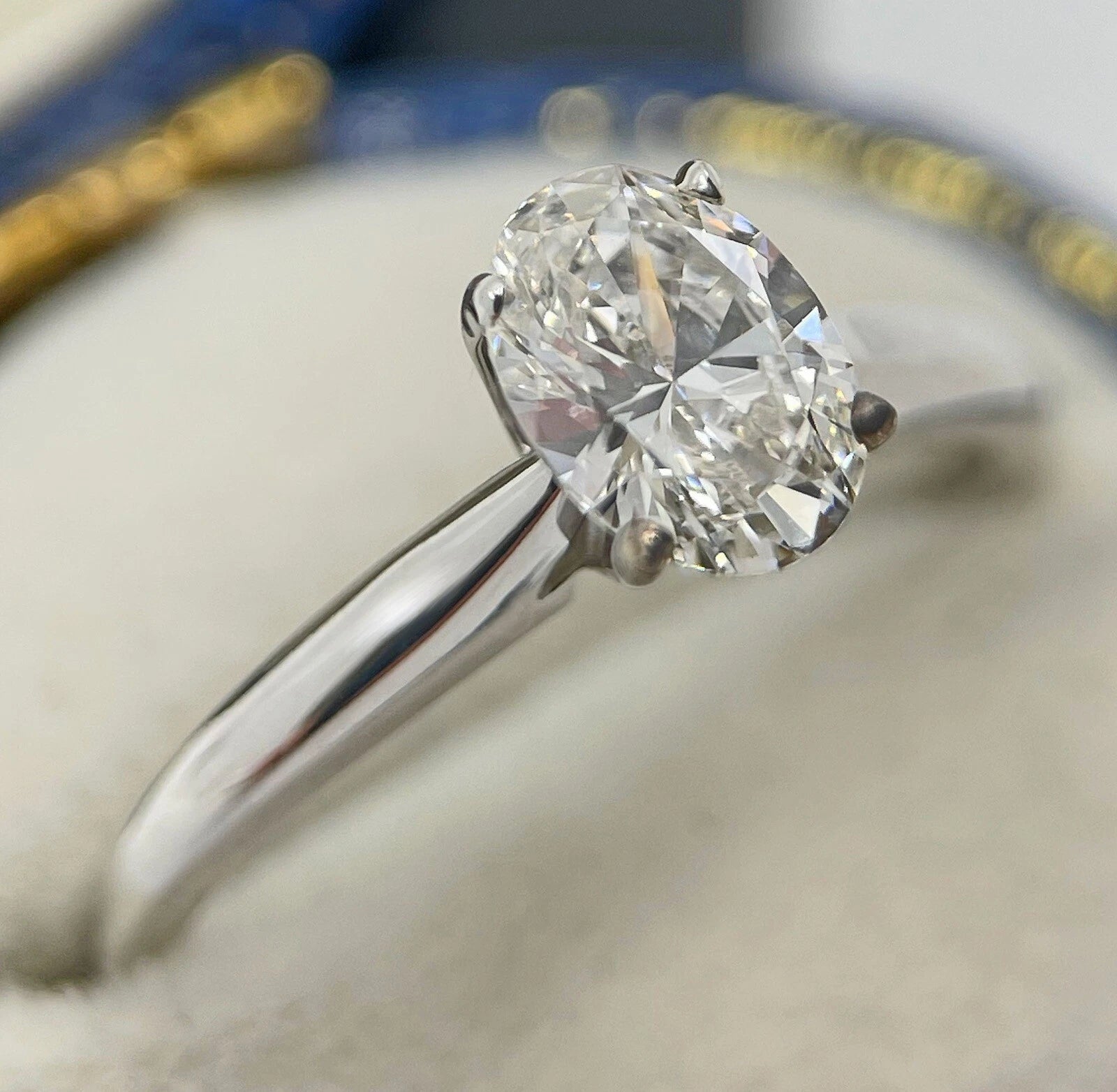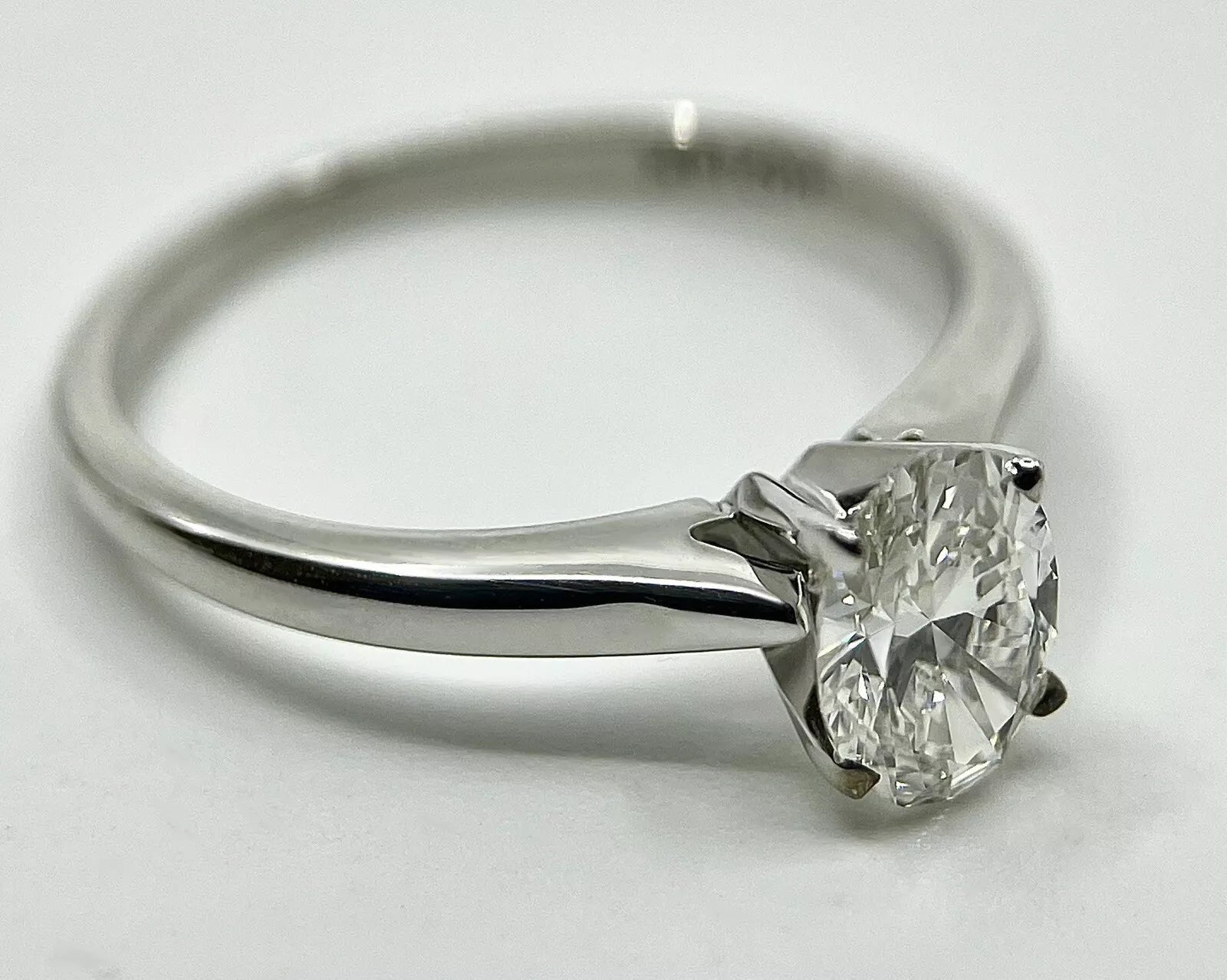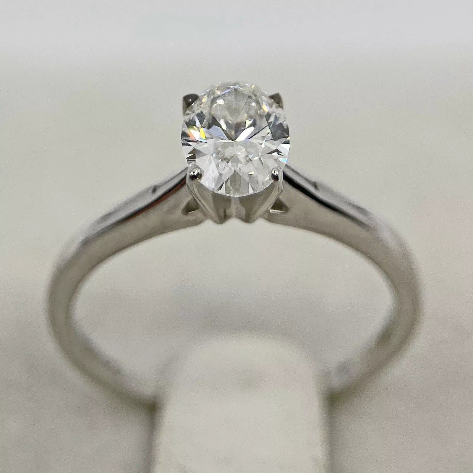 Diamond Ring Solitaire Oval 0.85 Carats 14ct White Gold Size K BA24