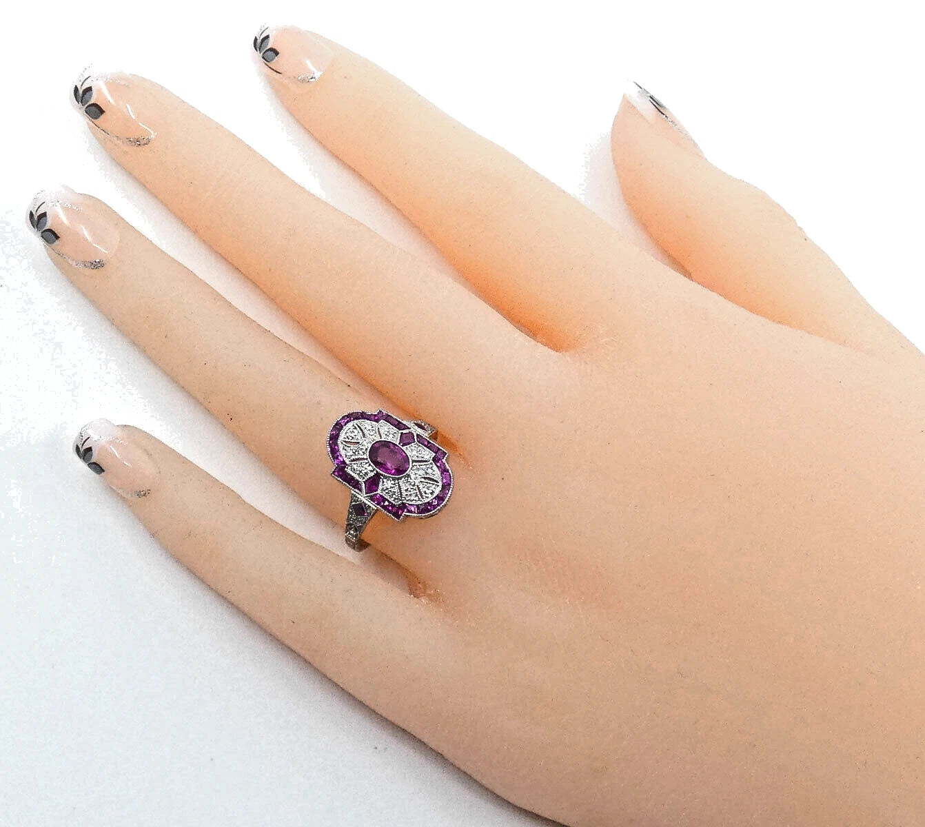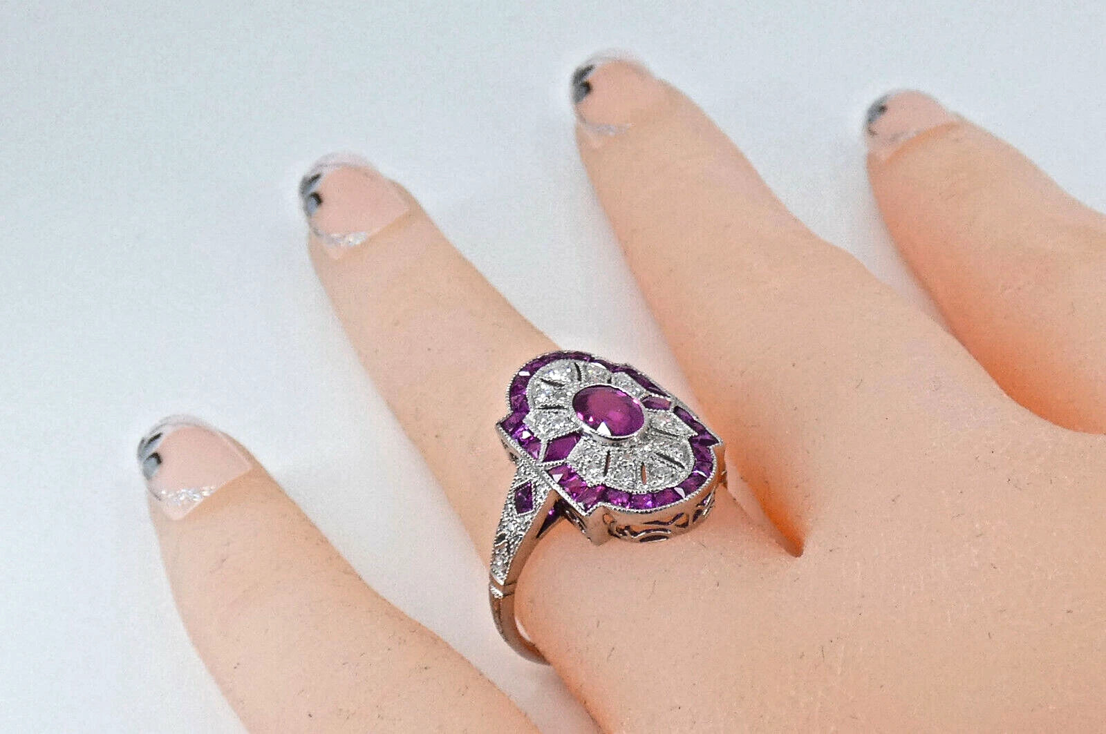 Platinum Ruby Diamond Ring Art Deco Style Size M1/2 BA159